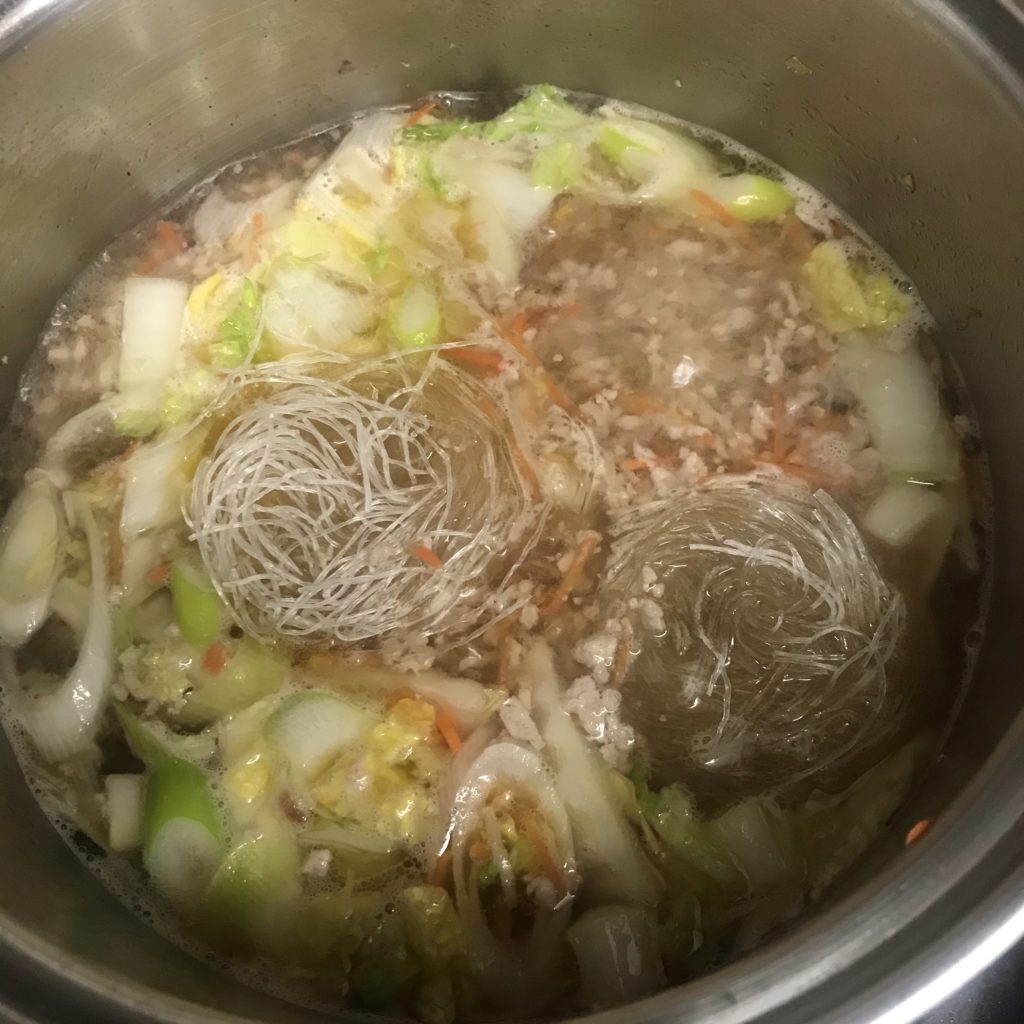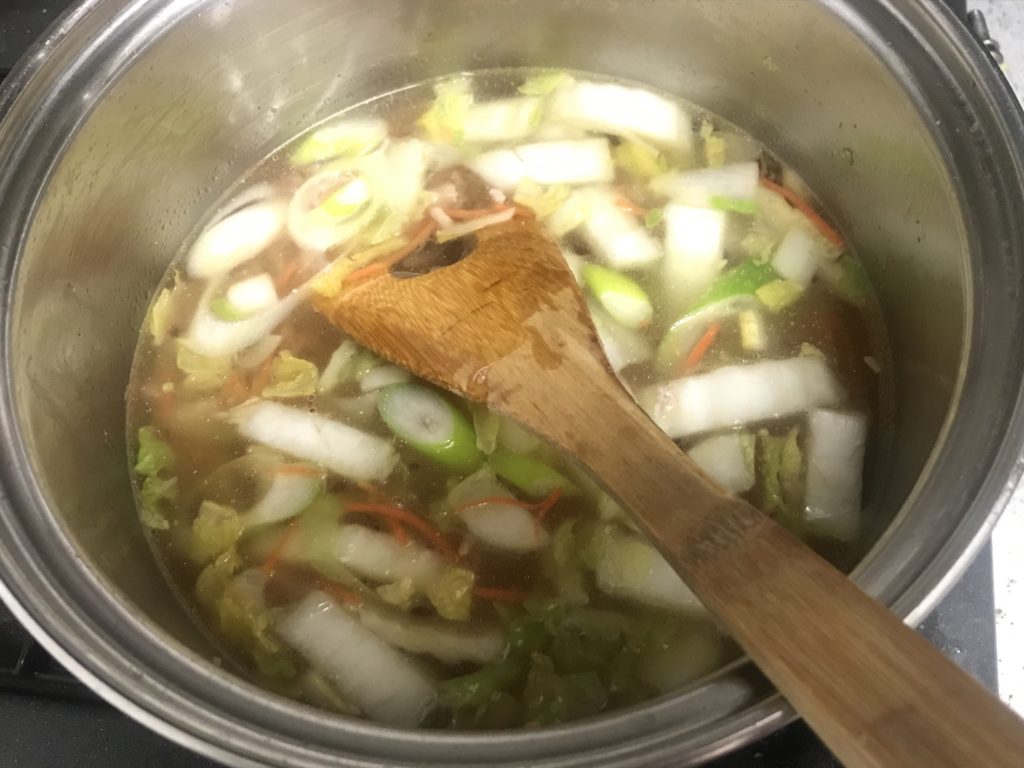 具材:はくさい、もやし、にんじん、長ねぎ、にら、しょうが、